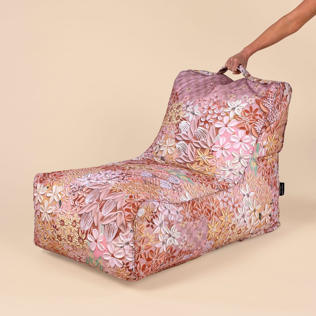 Tough enough for backyard hangs, pretty enough for the lounge, this beanbag is your go-to seat, wherever you drop it. Lightweight, water-resistant and generously sized, it’s comfort, covered, with handy side pockets to stash your book, phone or choccy while you relax.
